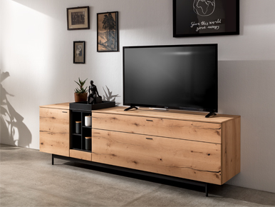 STYLE bricht als Solist in Balkeneiche natur den typischen Wohnwandgedanken auf.